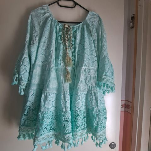 Kaunis naisten tunika/pusero, napiton. Elton-merkkinen. Väljä malli. Koko M-L. Savuton ja eläimetön koti. Postitus onnistuu.