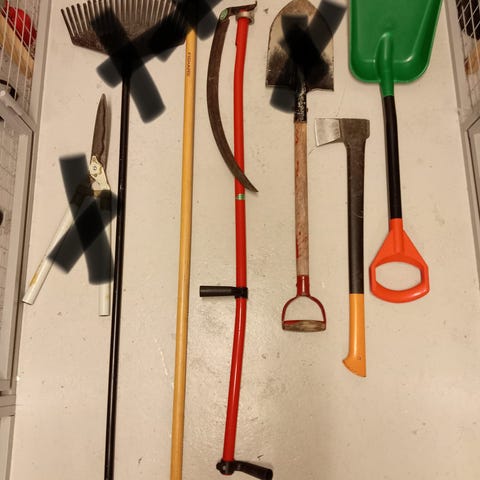 Kirves, pokasaha ja puukkosaha kaikki yhteensä 20 euroa