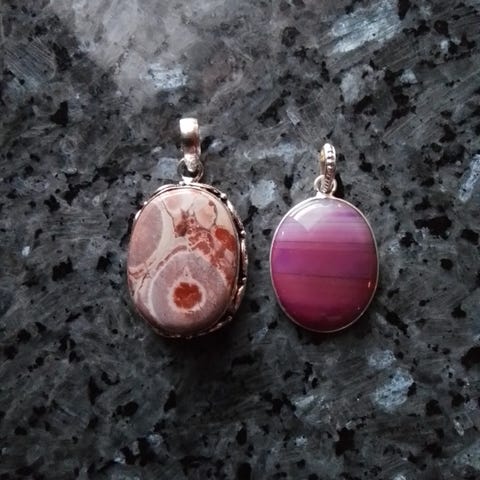 Uniikki koristeellinen riipus pinkillä korukivellä, korkeus ilman riipuslenkkiä 3,5cm.