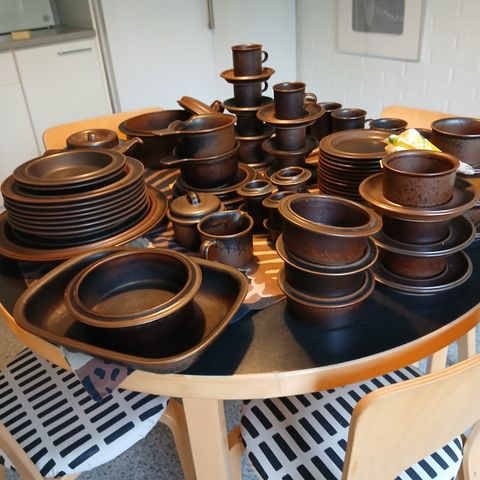 Arabian Ruska-teekupit ja aluslautaset. Kuppeja 7, aluslautasia 11. Yhdestä aluslautasesta lohjennut pieni pala alapuolelta. Muuten ehjiä ja lähes käyttämättömiä. Tarjoa hintaa yhdestä tai useammasta.
