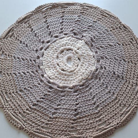 Myydään itsetehty matto. Matto tehty matonkuteesta. Halkaisija noin 68cm.