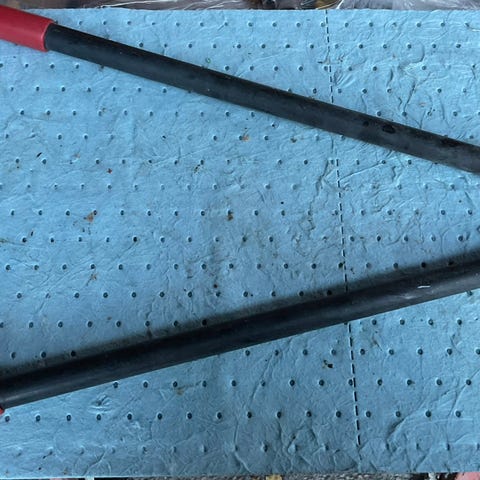 Hyväkuntoinen, liimattavien puu- ja ponttilautalattioiden asennus-sarja: kiilat, lyöntirauta, puulossi, erikoiset kiristysliinat, tuotu ulkomailta. (en löytänyt Suomesta vastaavaa)