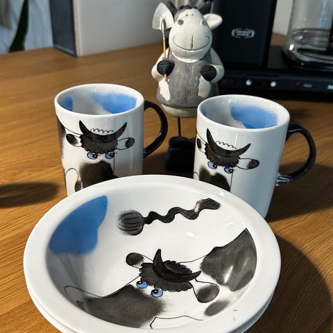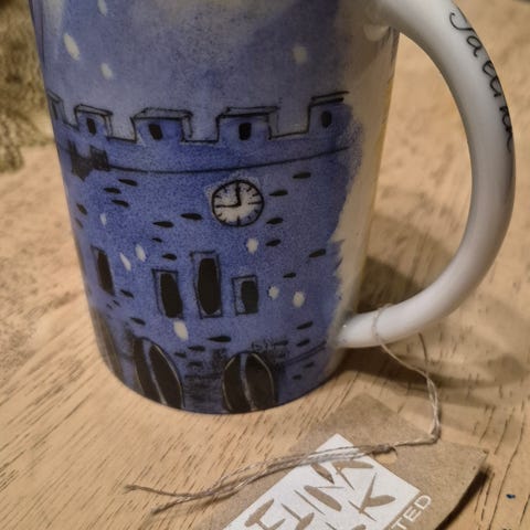 Virolaisen taitelijan Helina Tilk'n mukit. Yhteishinta. Kulkeutuu omien menojen mukana Raisio, Turku ja Kaarina.