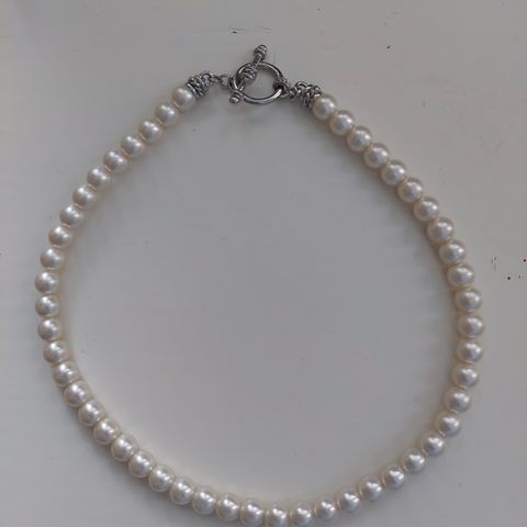 Helmikaulakoru hopeanvärisellä sydänriipuksella. Kaulanauhan Max pituus 50cm.