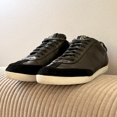 Erittäin hienot mustat nahkakengät / lenkkarit. Paksua nahkaa ja näkee että laadukasta tekoa. Kummallakin puolella vetoketju. Pari kertaa käytetty.