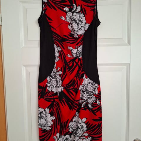 Beige lyhyt kotelomekko, jossa kukkakuvioita. Koko S. Takana vetoketju. Säädettävät naruolkaimet.
