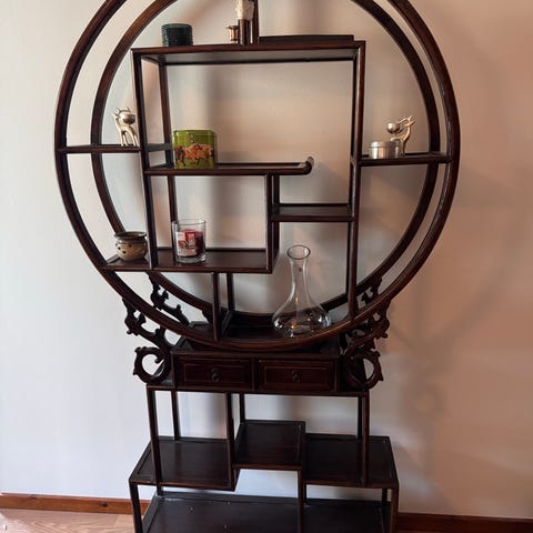 Uniikki antiikkityylinen hylly – mahdollisesti 1900-luvun alkupuolelta