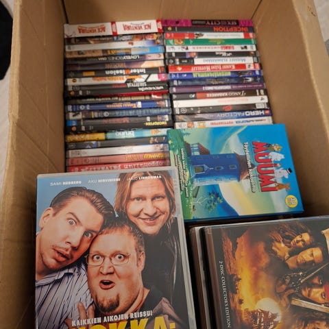 Myydään kuvassa olevat DVD-elokuvat pakettina sekä kaupan päälle muutama Simpsonit tuotantokausia joita ei kuvissa näy. Kappale määrä suuntaa antava koska tuotantokausissa useampi levy mutta 275kpl koteloa