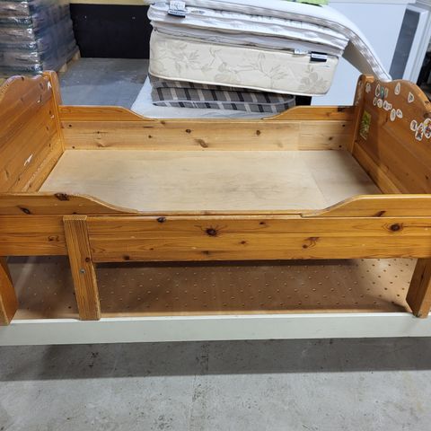 Puinen lasten jatkettava sänky. Maalattu punainen. Lasten patjan (2osaa) saa halutessaan mukaan.