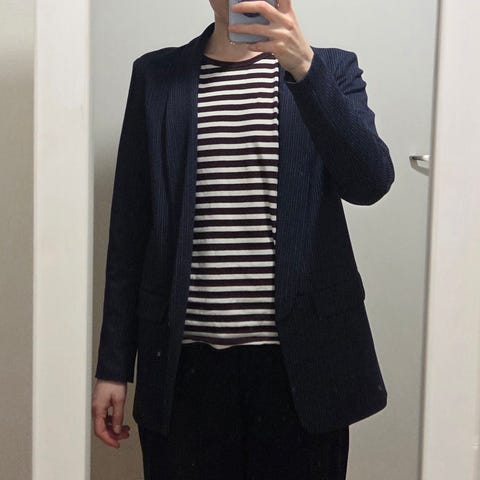 Uusi Soyaconcept raitajerseytakki. Materiaali 79% polyesteri, 18% viskoosi ja 3% elastaani.