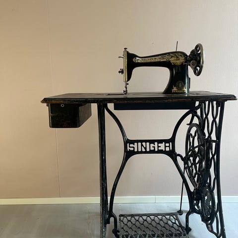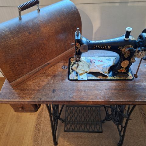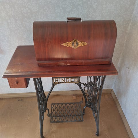 Singer varaosalaatikko 1950-luvulta. Mukana sekalaisia ompelukoneen varaosia