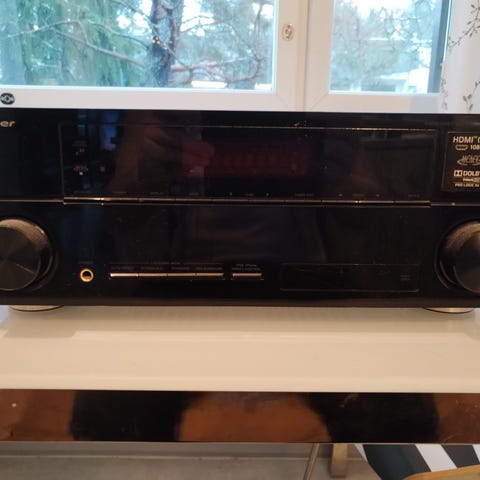 Tässä langallinen versio kotiteatteriin. Siistit kajarit. Laitteen päällä joitain naarmuja. Poistettu ehjänä käytöstä. Ohjevihko. Mmm.
