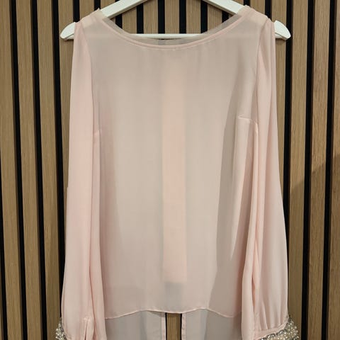 Myydään roosanvärinen, läpikuultava pusero. Koko S, Guess.