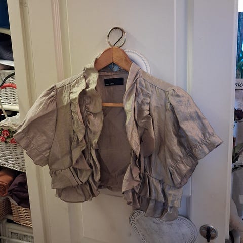 Kaunis kevyt vuoritettu "liehujakku". Hankittu juhlia varten varalta mekon päälle, ei ollut kuitenkaan tarpeen käyttää.