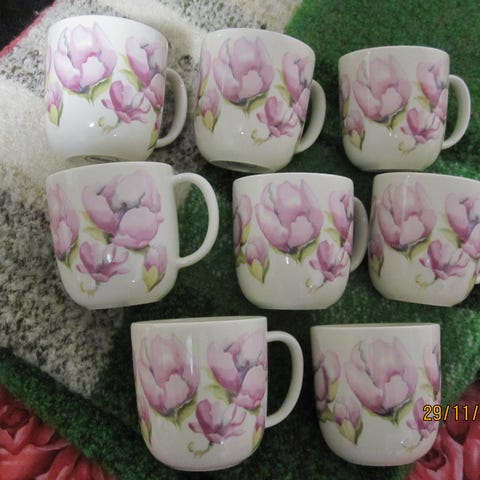 Kaksi kultakeramiikan mangolia mukia,uuden veroisessa kunnossa. Vahvaa kotimaista työtä. Vetoisuus on 3,5dl Hinta kahdelle mukille JA YHDELE KULHOLLE ON on 28e noudettuna,jos postitus niin 8,90 e lisää. Pakkaan huolella.