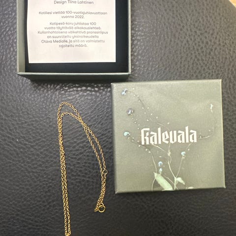 Ketjun pituus säädettävissä 42- 45 cm, korun halkaisija 2 cm. Valmistaja Kalevala Koru Oy.