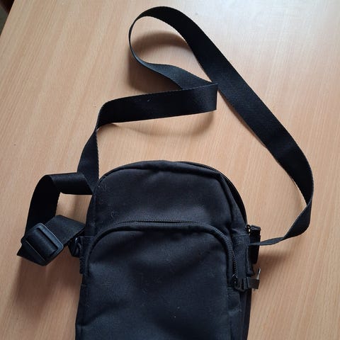 Olkalaukku. Sisällä 2 vetoketjutasku ja avainlenkki. Postitus normipostilla.