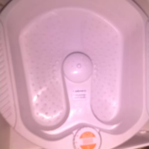 Käyttämätön jalkaspa. Ohjekirja. Laatikko hieman päältä nuhjaantunut säilytyksessä.
