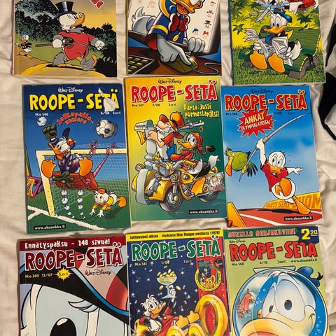 Myynnissä myös muita Roope-setiä ja Aku Ankka kirjoja.