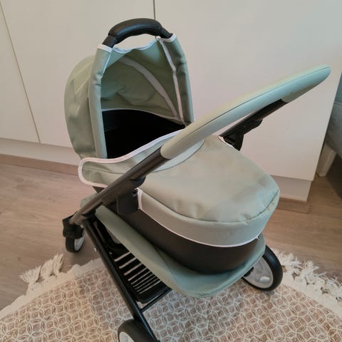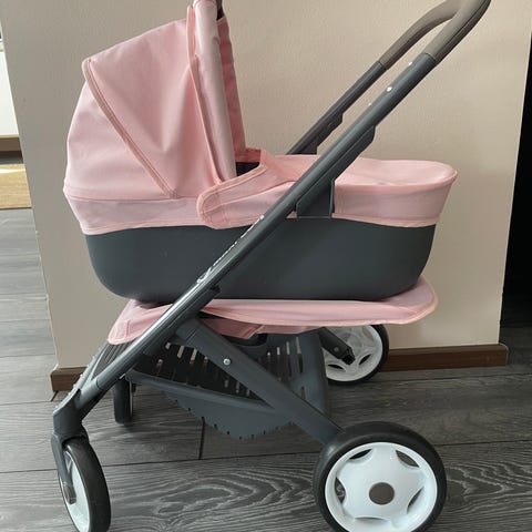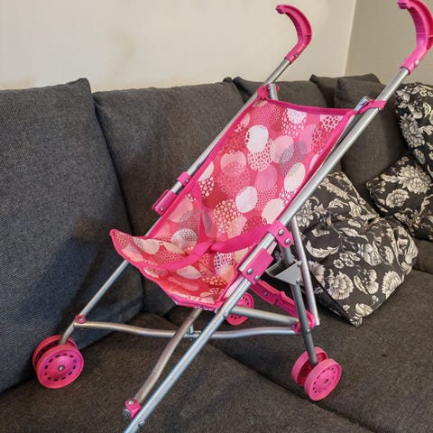Myydään siistit punaiset nuken vaunut. Vaunut saa laitettua kasaan ja renkaat irroitettua.