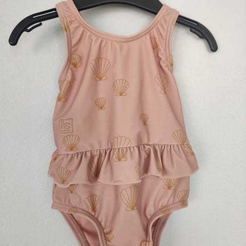 Primarkin uimapuku muistaakseni koossa 110 cm. Tyttö 116 cm ilmoitti sovittaessa, että olkaimet puristaa. Ollut vuosi aiemmin käytössä, jolloin koko ollut tuo 110 cm. Ok kunto, huomautettavat ilmenee kuvista.