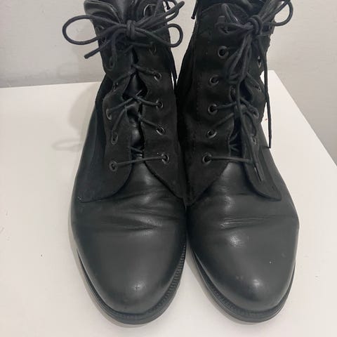 Antiikkinahkaiset nilkkurit. Nauhoilla voi säätää. Vetoketjut takana. Nouto tai postitus.