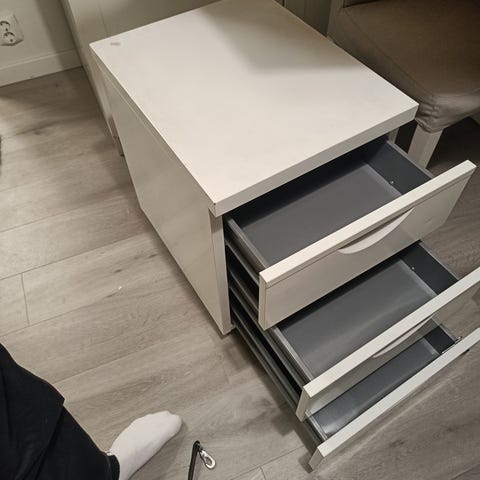 Myydään oikein siistissä kunnossa olevat vaaleat pienet lipasto + hylly 30€ yhteensä