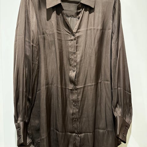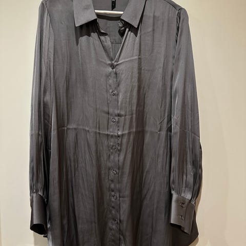 UUSI hintalapullinen (39,95 €) Mode Vision merkkinen, siisti ja juhlava satiinipaitapusero, jossa edessä solmittava koristekaulus. Hihansuissa halkiot ja napit. Materiaali 100 % polyesteri. Pesulämpötila 30 astetta.