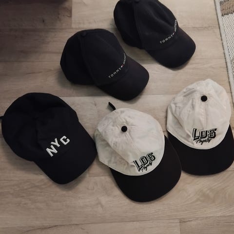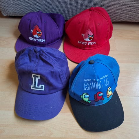 Kuvassa olevat poikien lippikset. Kirjava kokoa 7 1/4 ja viininpunainen one size. Hinta näille 2€/ kpl. Harmaa merkkilippis on uusi, kokoa 7 1/8. Sen hinta 5€.