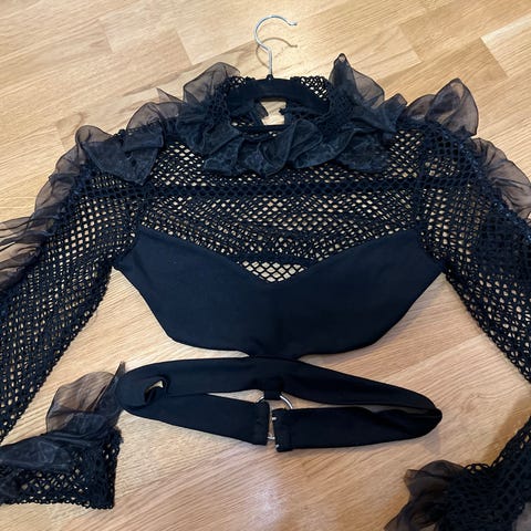Myydään naisten musta pitsikuvioinen neule verkkopaita.