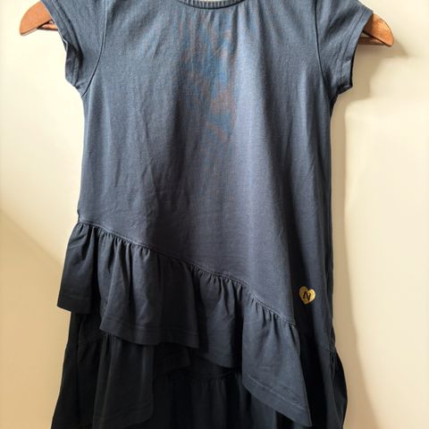 Noshin vaalean persikanvärinen vohvelikankainen taskullinen mekko kokoa 110cm/116cm, vastaa mielestäni kokoaan. Ehjä ja perussiisti, mutta edessä ja hihansuissa pari tahraa ja helmassa isompi tahra kohta, katso lisäkuvat. Yleisilme perussiisti käytetty, menee vielä mielestäni ainakin päiväkotivaatteena.