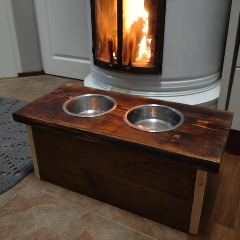 Peltinen koiran kuiva ruoka astia. Korkeus noin 45