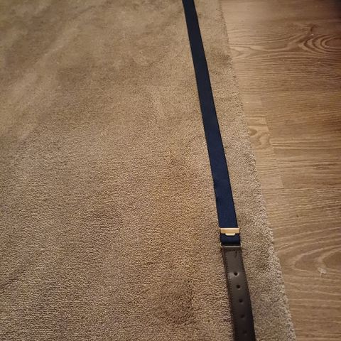 Myydään sininen vyö. Mitat leveys 4 cm ja pituus 73cm