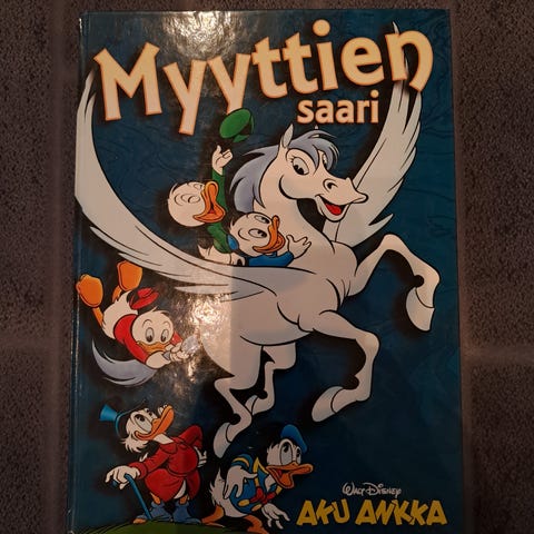 Myydään Aku Ankka Myyttien saari sarjakuva kokoelma kovakantinen kirja. Ensimmäinen sivu revennyt irti. Sivuilta 157-160 alakulmasta revennyt osa irti, mutta itse sarjis luettavissa siitä huolimatta.