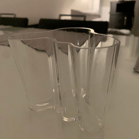 Myydään kuvan mukainen pieni aalto-vaasi. Aaltovaasi on sininen, jossa tarra, mutta alkuperäistä pahvikoteloa ei ole.