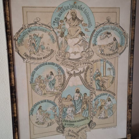 Vanha taulu koristeellisin kehyksin
