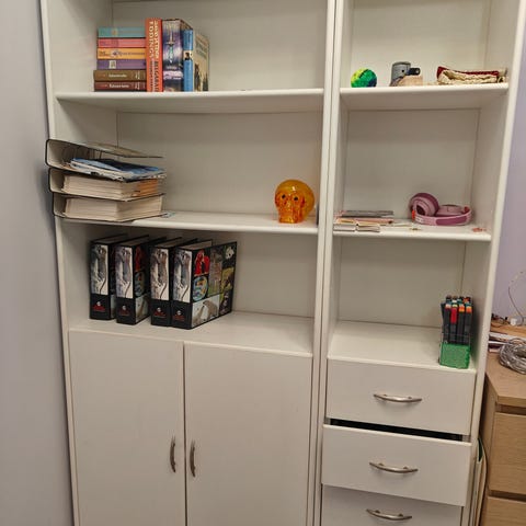 Myydään kuvanmukainen vaalea kirjahylly koottuna. Kirjahylly on siisti, ehjä ja hyvässä kunnossa. Pientä vähäistä käytönjälkeä on näkyvissä päätyosan alahyllyllä.