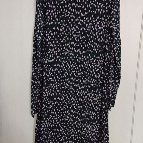 Helman ympärys 100 cm. Musta pohja, bees / vaaleanruskea pilkut. Hihat 7/8 pituiset. Trikookangas: puuvilla 95% ja elastaani 5%.