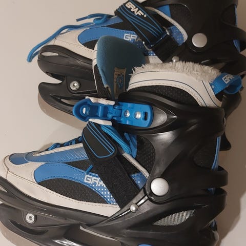 Graf super 100 malliset luistimet. Todella hyvässä kunnossa mutta tietenkin kaipaavat teroituksen. Luistin osa ruostumatonta. Lapsille käyvät.