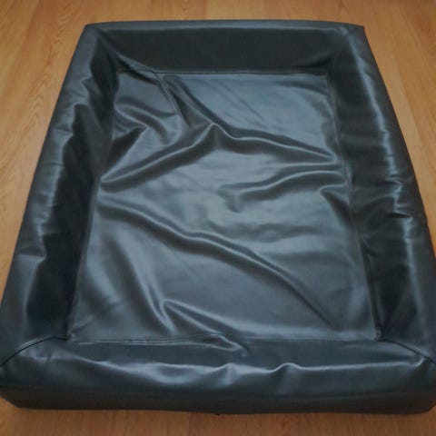 Ruskea käsin tehty pienehkön koiran pedin runko.