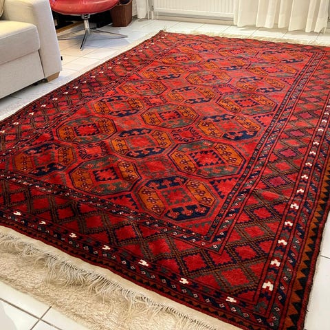 Aito, upea ja käsinsolmittu vintage Afgaani villamatto kokoa 195 cm x 58 cm. Upea kuviointi ja huippusöpö.