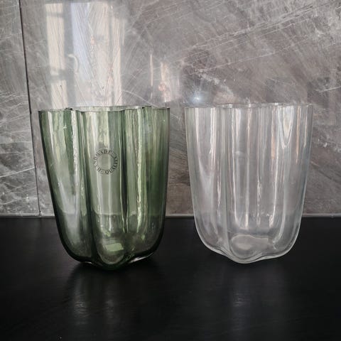Myydään käyttämättömät käsinmaalatut Muurlan lasin Anemone-maljakot 2 kpl, värinä valkoinen huurre.