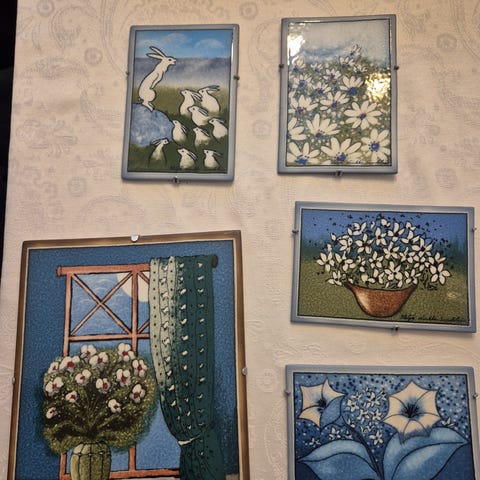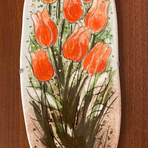tulppaaneja tulvillaan Arabia seinälaatta. suunnittelija Heljä Liukko-Sundström 1990