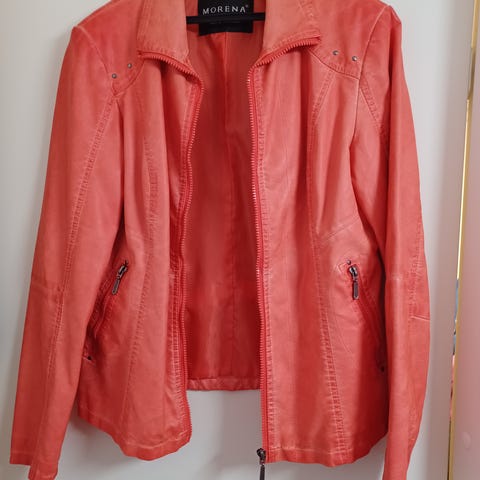 Punainen keinonahka niitti biker takki.Ostettu Jeans.fi pari vuotta sitten ja käytetty n.5 krt.Nyt liian pieni.Koko M.