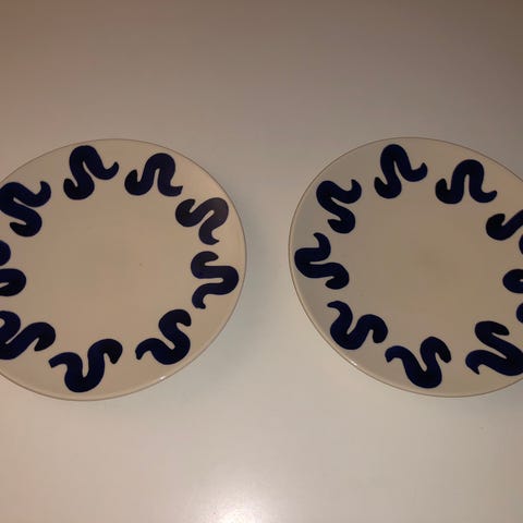 Isot matalat lautaset ovat vielä omassa muovissaan.