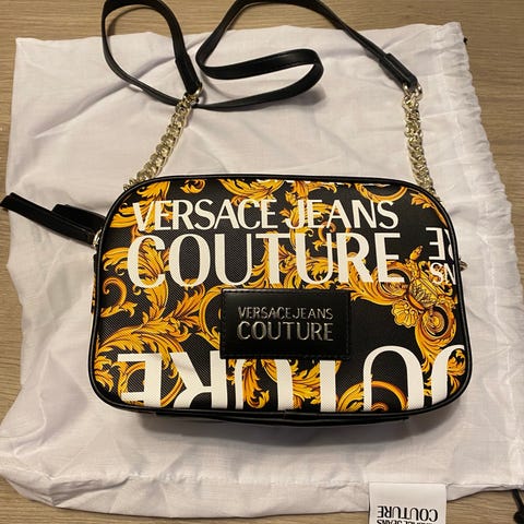 Myydään Versace Jeans Couturen musta laukku olkahihnalla. Hihnaa voi säädellä tilanteen mukaan lyhyemmäksi tai pidemmäksi. Laukku on uudenveroinen.