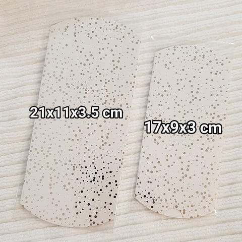 Myytävänä UUSIA käyttämättömiä kartonki lahjarasioita. Isompi leveys 11,5 cm ja pituus 27,5 cm. Pienempi leveys 9,2 cm ja pituus 27,3 cm. Näitä on useampi iso laatikollinen. Myös postituksella. 50 kpl 5€