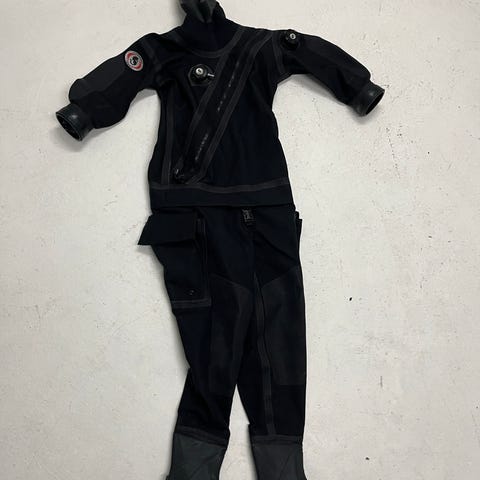 Otterin hyväkuntoinen sukelluskuivapuku setti kiinteillä sukilla ja irtokengillä. Vetoketju edessä. Mansetit täytyy uusia, muuten kunto moitteeton. Mittojen mukaan teetetty (S koon ja 175 cm pituuden mukaan), vähän käytetty. Kengät kokoa 39. Menee varmasti XS-M kokoiselle.