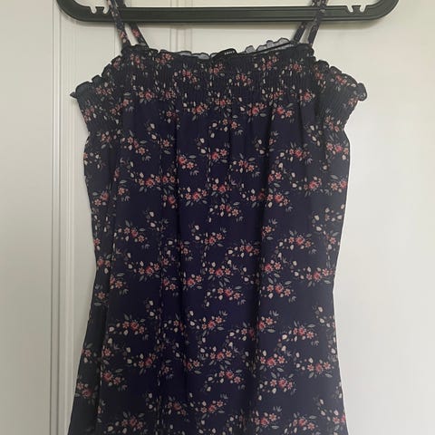 Kaunis kukallinen paitapusero koossa S. Käytetty paljon, vielä oikein hyvässä kunnossa. Läpikuultavaa materiaalia.