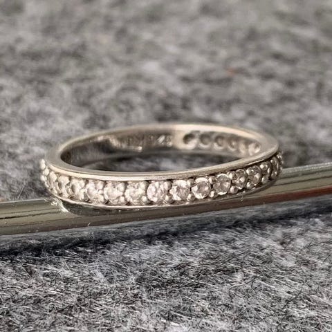 Käyttämätön. Nimi ja pitoisuusleima on. Koko 17,5. Violeteilla kuutiollisilla zirkoneilla
